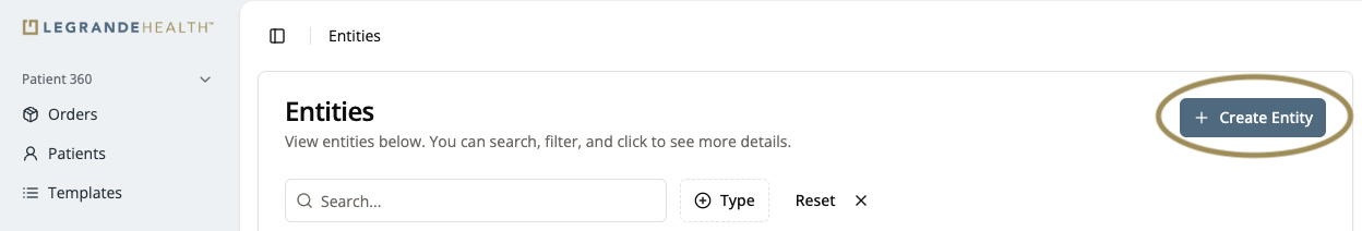 2. Click Create Entity