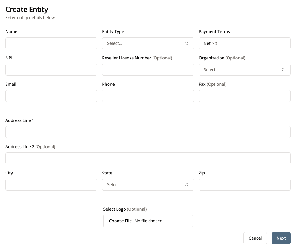 Select any entities you would like your practice to be able to order from.
