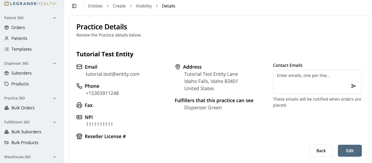 In this guide we will go over how to add a practice to the portal. A practice added here will be ready to sell products directly and through other dispensers to patients in Patient 360 and will be able to make bulk orders of products from manufacturers in Practice 360.