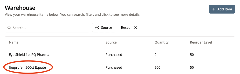 For this tutorial, we will update the inventory of the Ibuprofen 500ct Equate.