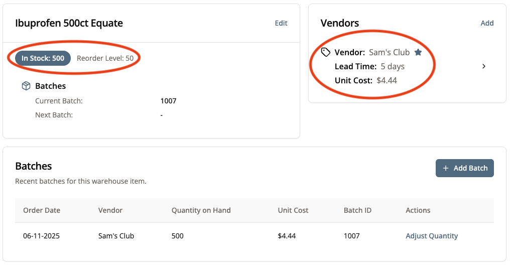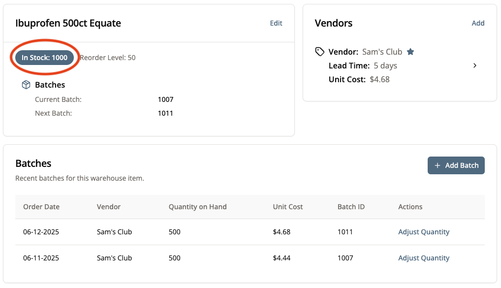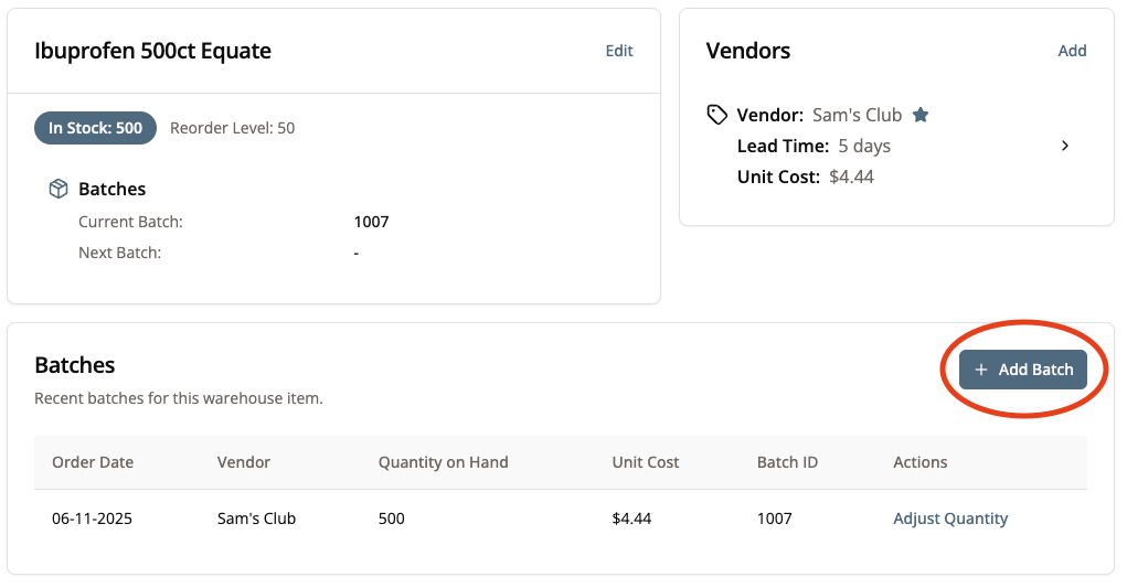 In this guide, we will go over how to add inventory in the Warehouse using batches. This should be your standard way to input inventory.